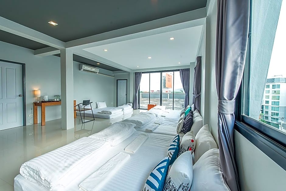 This air-conditioned family room has a desk, a balcony, city views and a private bathroom. The unit has 8 beds.